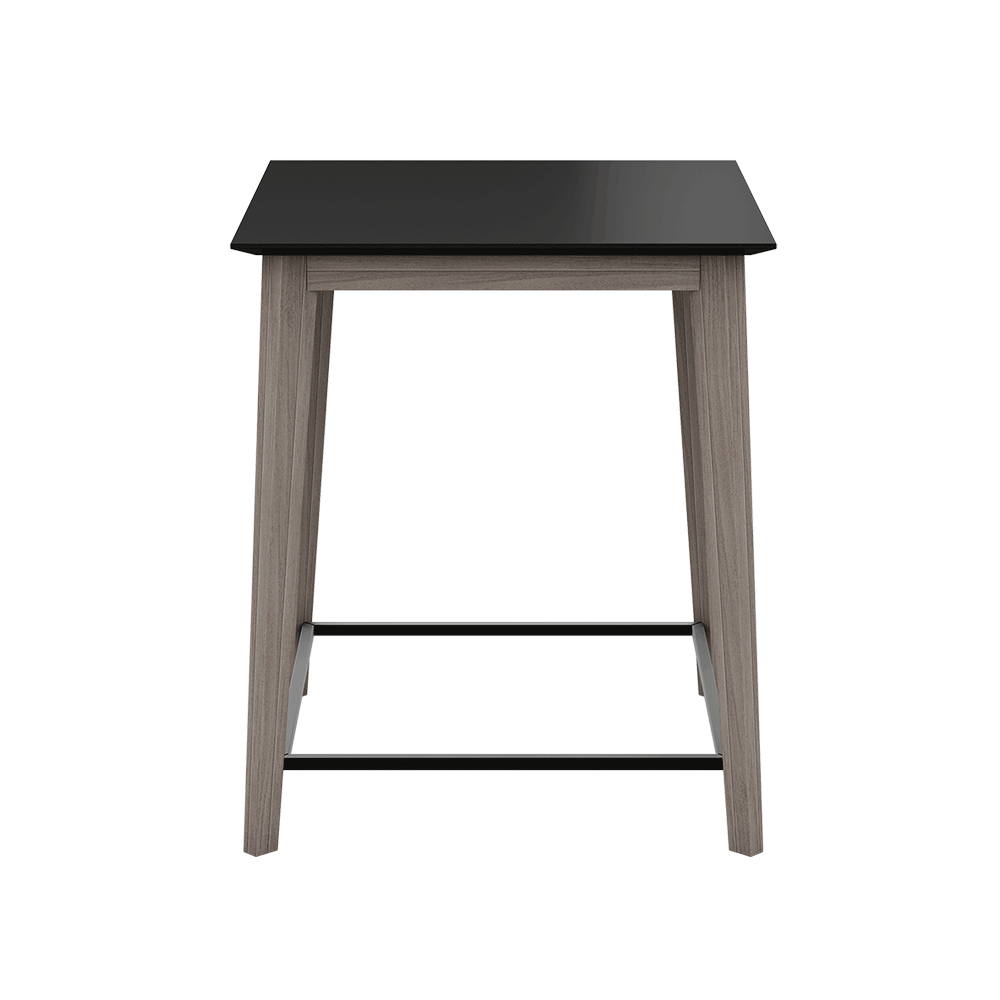 D’une hauteur de 76 cm, elle peut être dotée d’un plateau en bois massif avec chant droit, arrondi ou biseauté ou encore d’un plateau en Fenix NTM ou aggloméré avec surface HPL ou mélaminé.