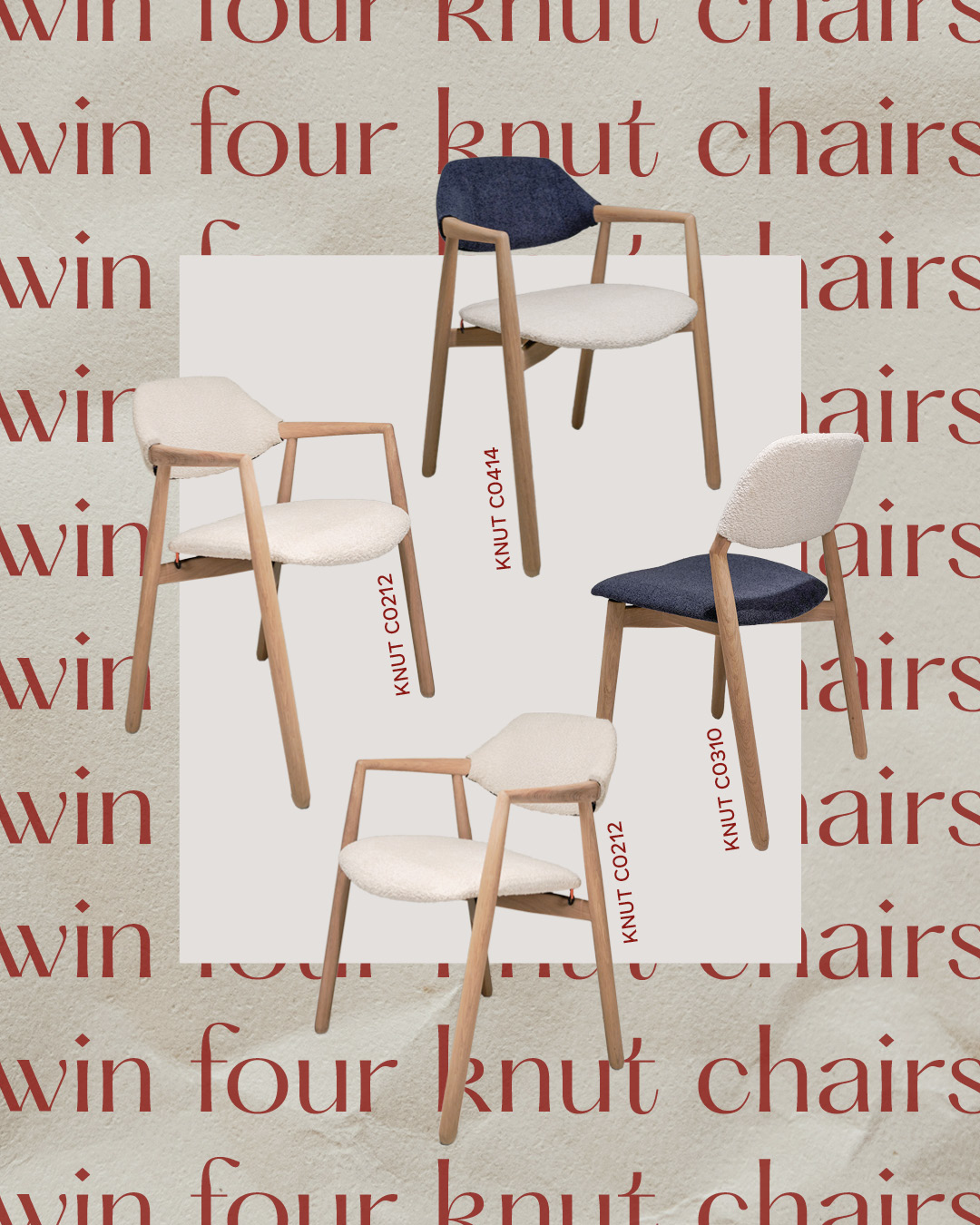 1e winactie – 4× KNUT stoelen (collectie 2025/2026)