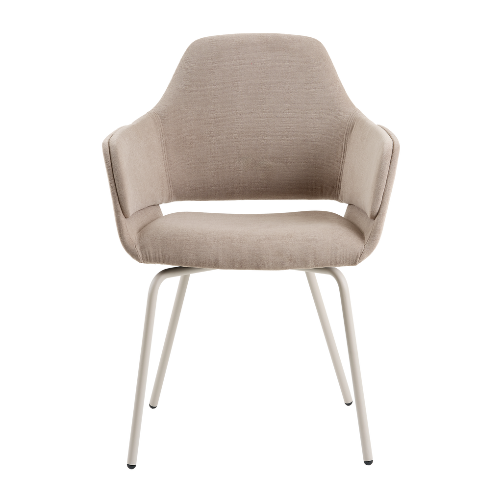 Lotus speelt de kaart van zachtheid. Gezellig, knus, comfortabel zijn de sleutelwoorden voor dit comfortabele model. Deze stoel is niet alleen visueel uitnodigend en warm, maar biedt ook een uitstekende zithouding. Met zijn opening aan de achterkant en zijn omhullende rugleuning zullen je gasten genieten van ontspanning, of het nu in je keuken, een eetruimte of een professionele omgeving is. Om deze gulheid te compenseren, onthult de stoel elegante kegelvormige metalen poten.