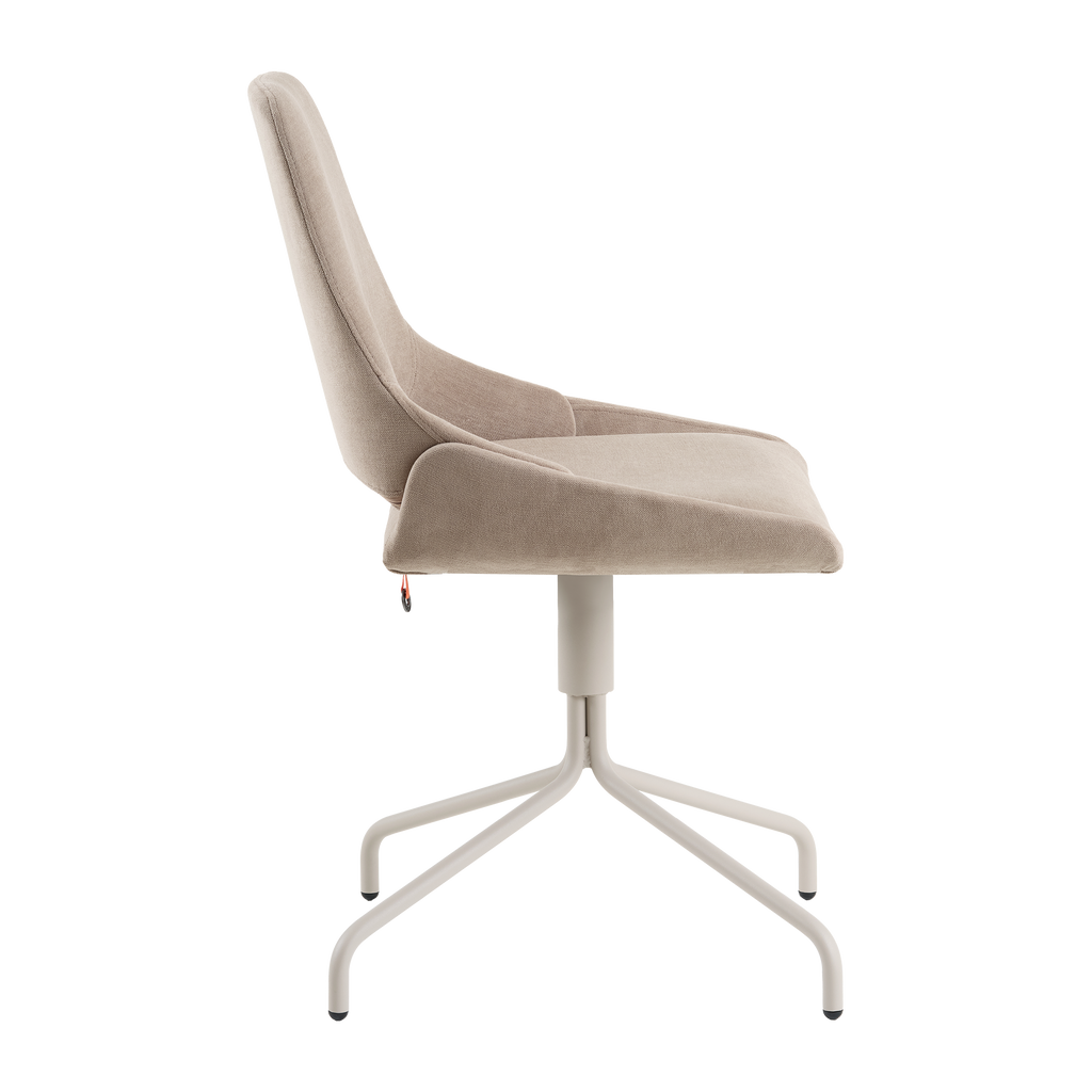 Wil je werken in een rustgevende omgeving? Kies voor onze draaibare Lotus stoel voor optimaal comfort. Visueel uitnodigend is deze zitting ongeëvenaard in het transformeren van een ruimte naar een gezellig toevluchtsoord. Bovendien belooft het zijn gebruikers constante rugondersteuning dankzij de opening aan de achterkant en zijn omhullende schelp, die doet denken aan een bloem die op het punt staat te bloeien. De twee panelen, zitting en rugleuning, creëren een delicate natuurlijke continuïteit en kunnen volledig aangepast worden (afwerkingen in dubbele kleur of dubbel materiaal).