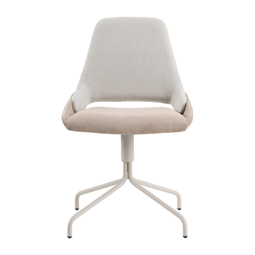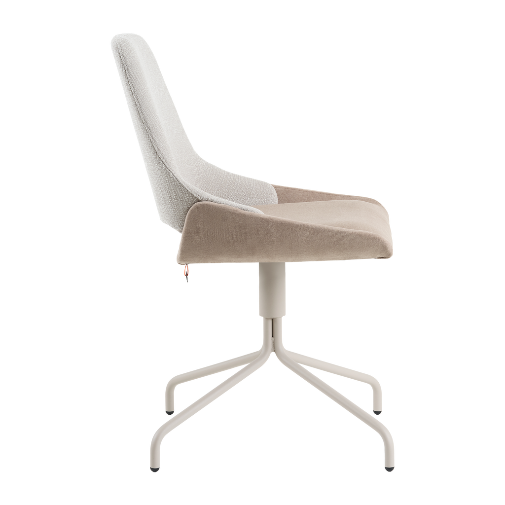 Wil je werken in een rustgevende omgeving? Kies voor onze draaibare Lotus stoel voor optimaal comfort. Visueel uitnodigend is deze zitting ongeëvenaard in het transformeren van een ruimte naar een gezellig toevluchtsoord. Bovendien belooft het zijn gebruikers constante rugondersteuning dankzij de opening aan de achterkant en zijn omhullende schelp, die doet denken aan een bloem die op het punt staat te bloeien. De twee panelen, zitting en rugleuning, creëren een delicate natuurlijke continuïteit en kunnen volledig aangepast worden (afwerkingen in dubbele kleur of dubbel materiaal).