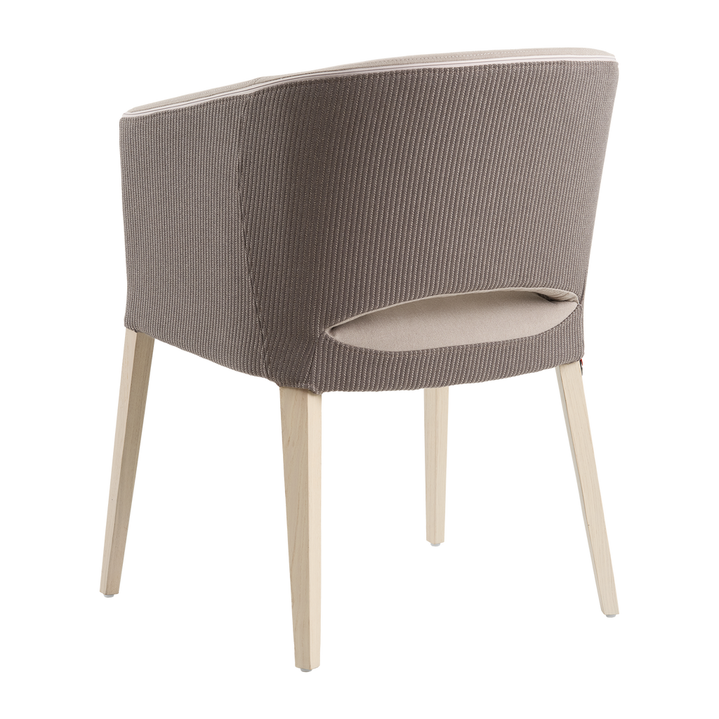 Ronde vorm, zachte lijnen, uitnodigende rondingen... deze stoel belichaamt de essentie van comfort, vandaar zijn suggestieve naam Cuori (harten in het Italiaans). Met zijn armleuningen, zijn rugleuning die de rug omhult, en zijn kussenzitting, biedt het superieur welzijn aan zijn gebruikers, die gemakkelijk uren aan tafel kunnen doorbrengen zonder ongemak. Aanpasbaar, deze massief houten zitplaats past zich aan uw omgeving aan: selecteer de kleur van het lint en de rits.